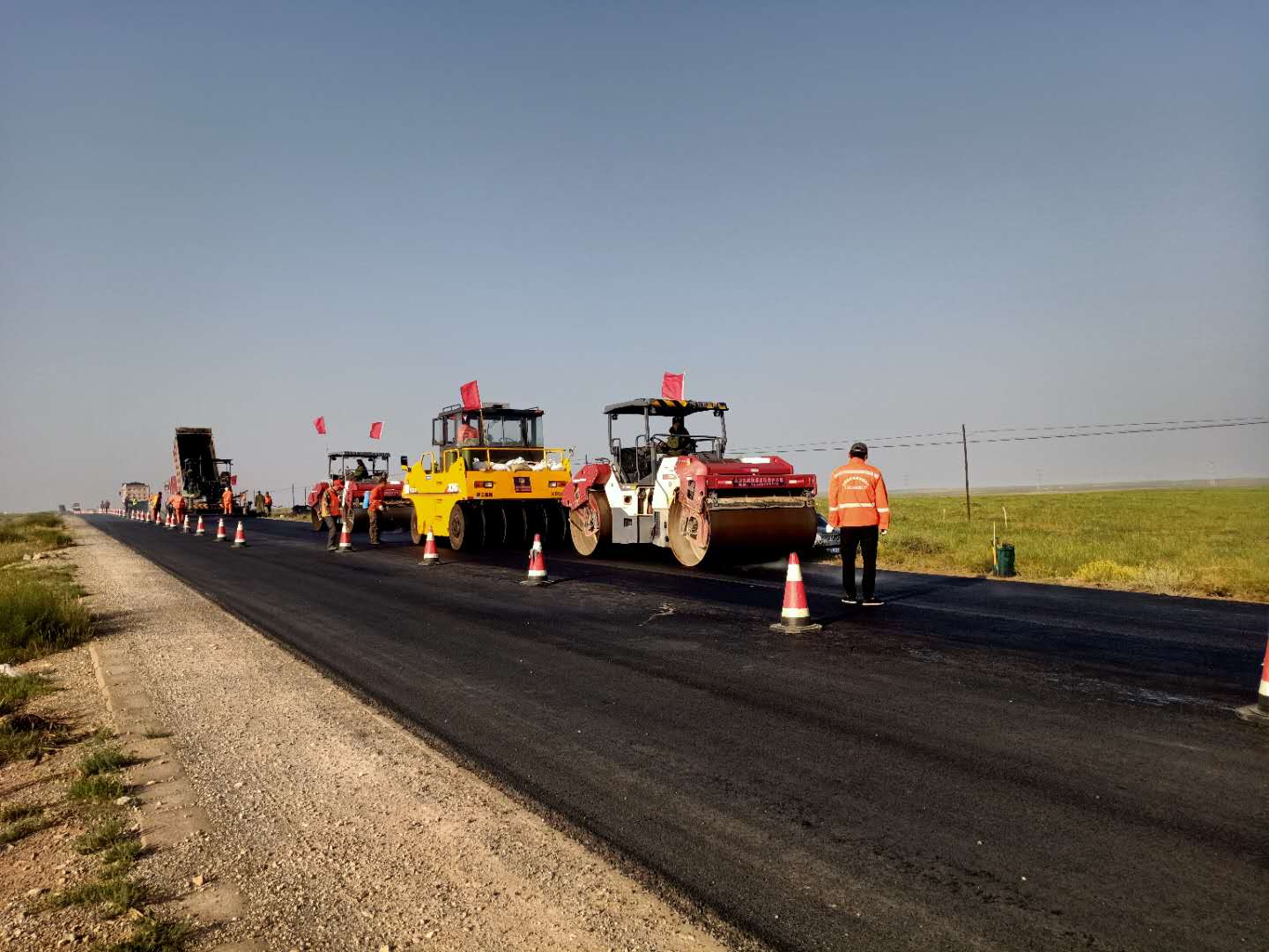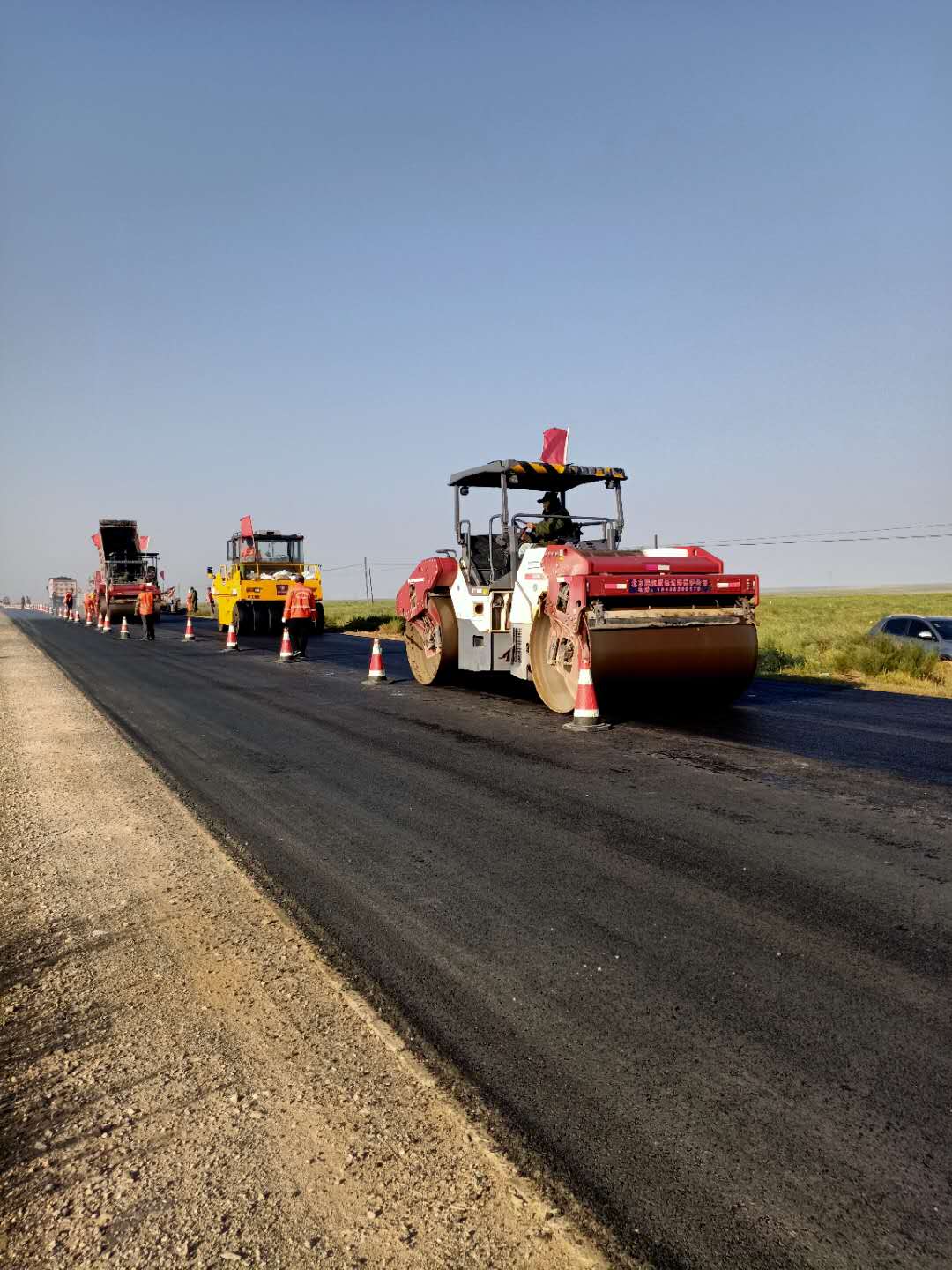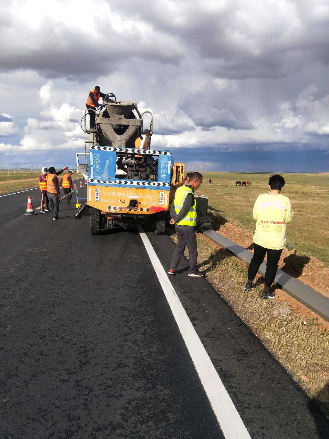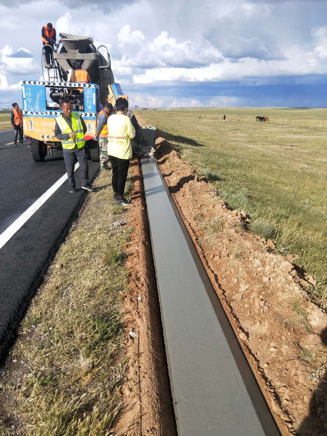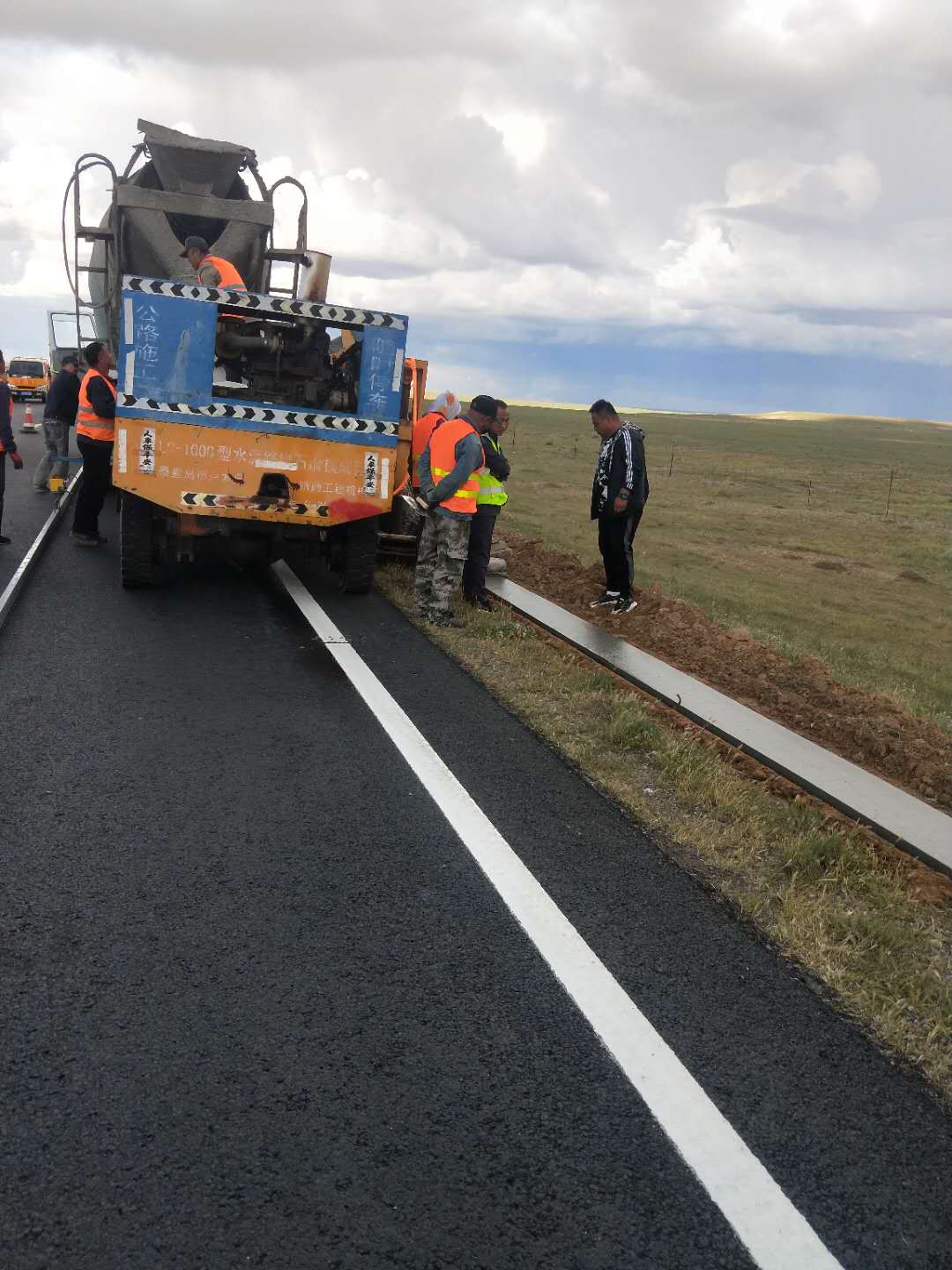 該路段銑刨原瀝青混凝土1厘米厚10152平方米,挖出原4厘米厚瀝青混凝土面層15494平方米,挖出原20厘米厚水泥穩(wěn)定碎石基層15494平方米,按照工程結(jié)構(gòu)分類,加鋪1厘米厚橡膠瀝青碎石封層215892平方米,鋪筑3厘米厚AC-13細(xì)粒式瀝青混凝土216024平方米,回填24厘米厚混凝土基層15494㎡。新建C25現(xiàn)澆混凝土護(hù)肩板,累計(jì)使用C25現(xiàn)澆混凝土1067.65m3,培土路肩5277m3。